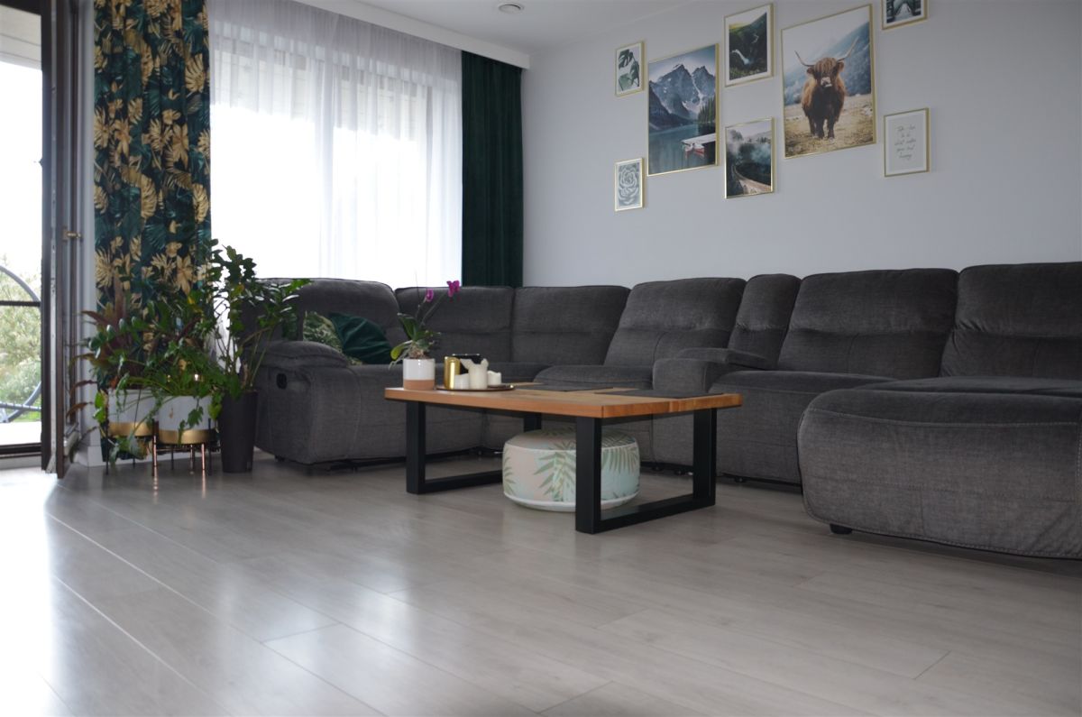 Salon z jadalnią i kuchnią z wyjściem na taras - idealne miejsce na spotkania z rodziną i przyjaciółmi.