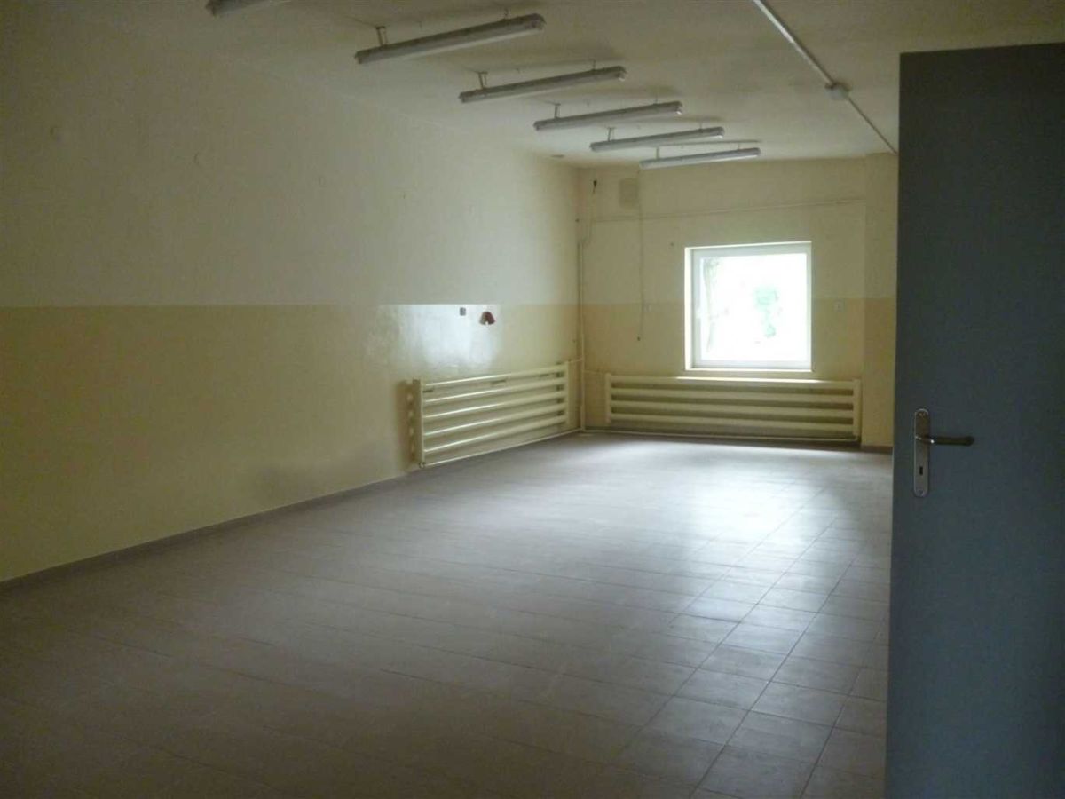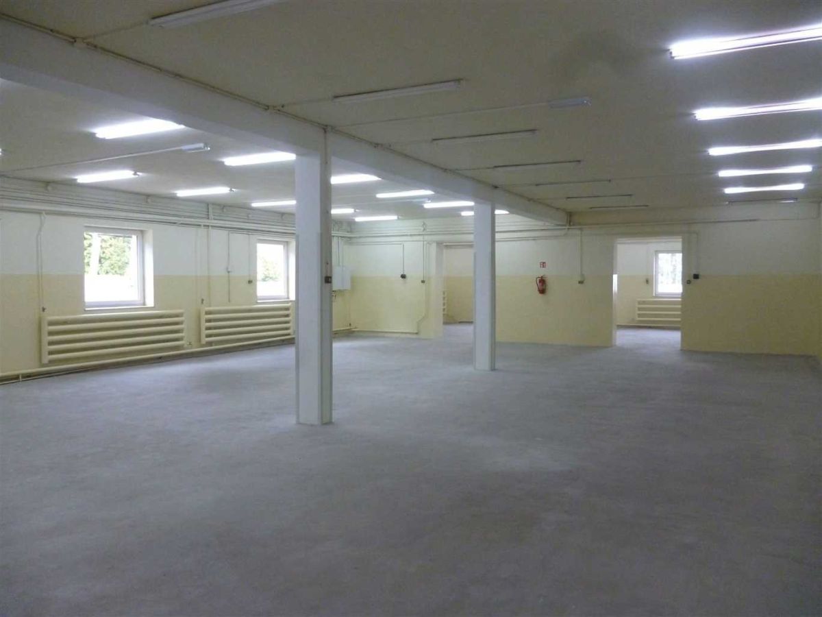 Parter budynku składa się z dwóch dużych sal produkcyjnych wysokości około 3,1 m, części biurowej ( z dodatkowym wejściem tylko do biura ), pomieszczenie gospodarcze oraz toalety, na podłogach beton.